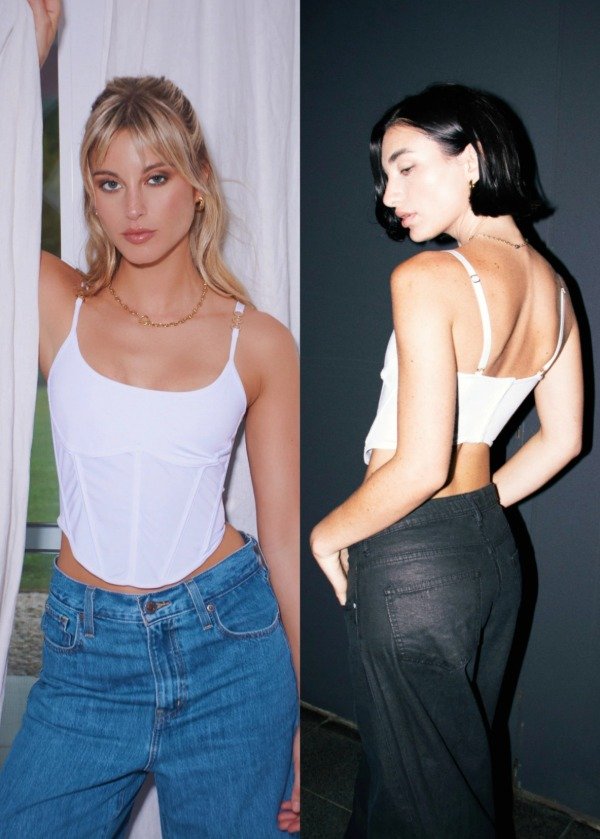 y detalle de accesorios dorados en breteles. La tela es elastizada,