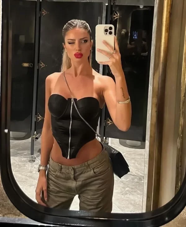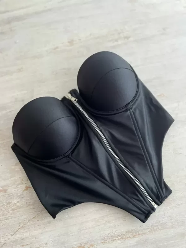 BUSTIER / CORSET DE TRICOT CHINTZEADO CON CIERRE CENTRAL.