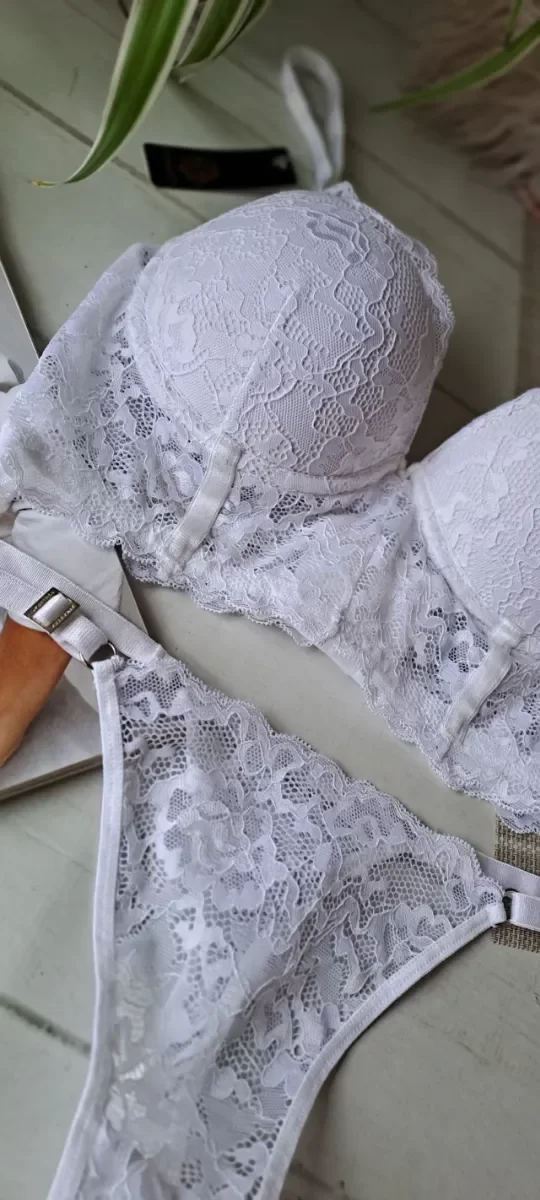 CONJUNTO TIPO BUSTIER. CORSET TASA SOFT ARMADA CON RELLENO, BASE Y CON ARO. TODO DE PUNTILLA.