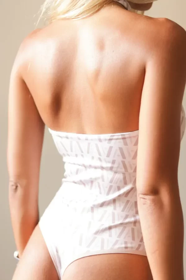 Body asimétrico de fina microfibra, con doble tela en busto y