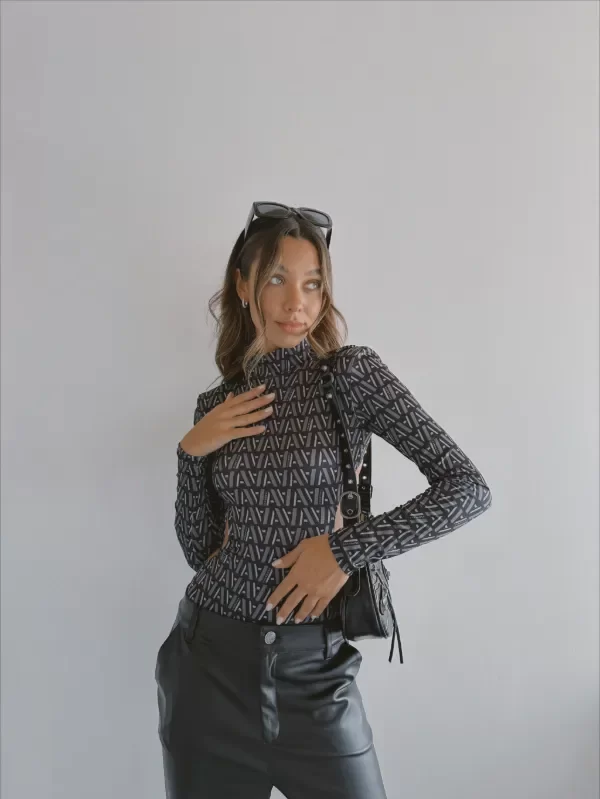 Body luxury manga larga, cuello polera tul labrado