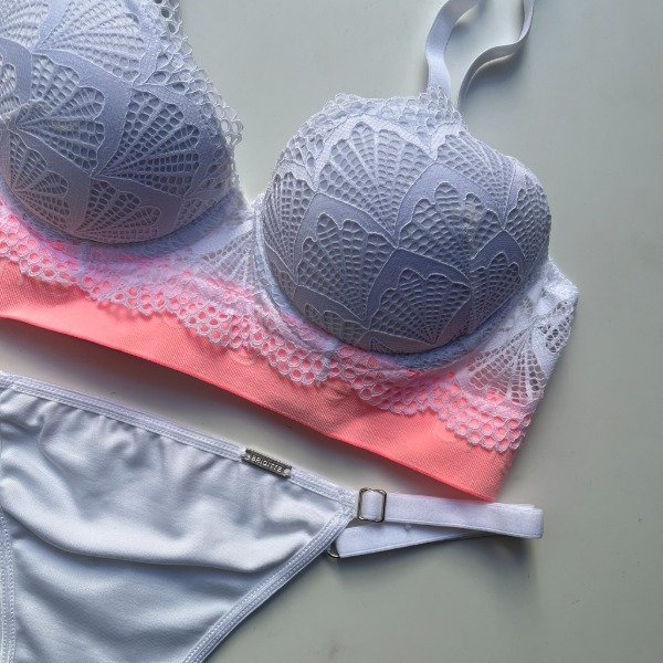 Conjunto taza soft de puntilla con elástico personalizado y less