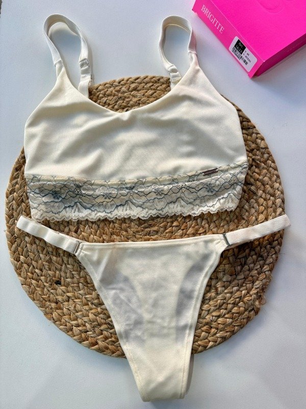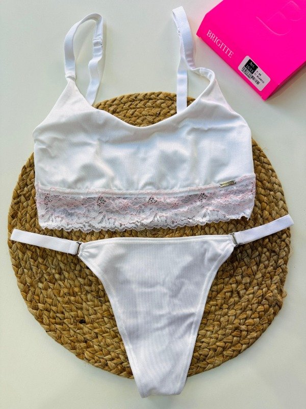 Conjunto sin taza de trícot doble y puntilla con less regulable.