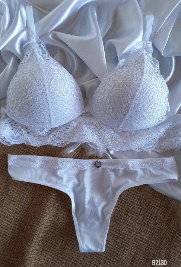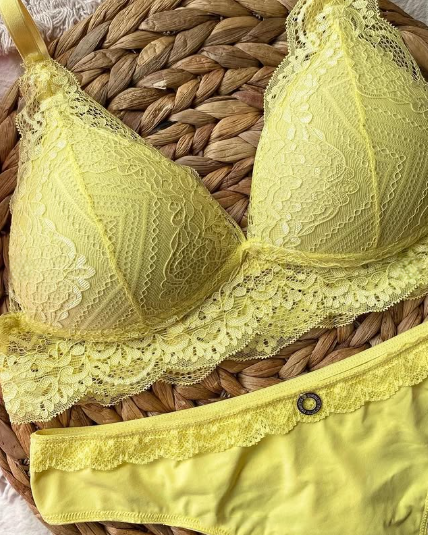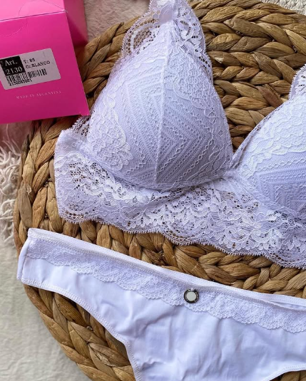 Conjunto taza soft triángulo de puntilla con encaje y less de microfibra