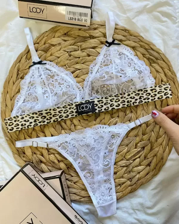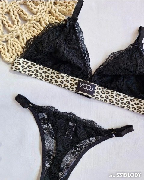 Conj. triangulo de puntilla con elástico sublimado y less regulable