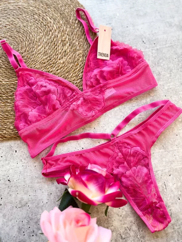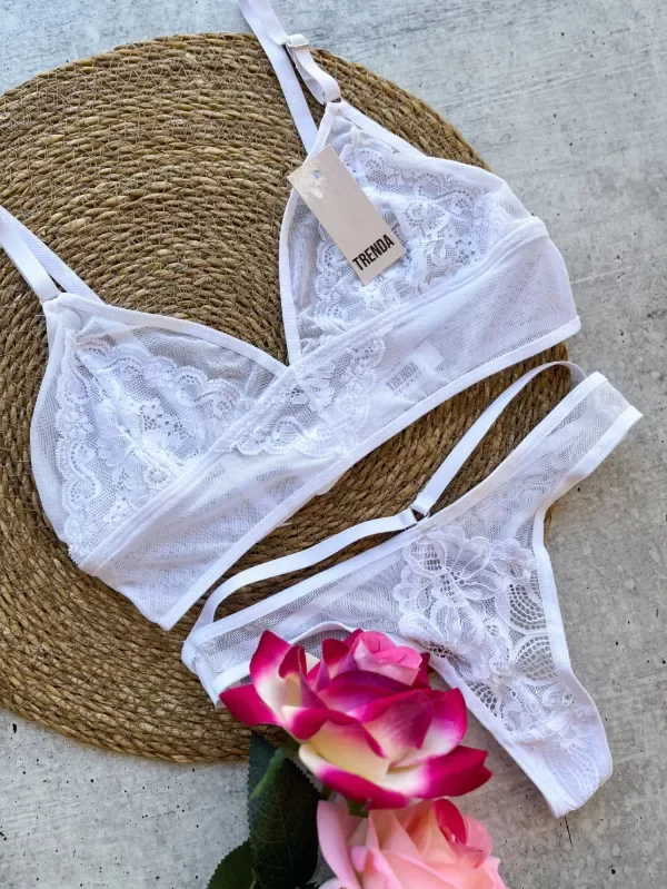 Conjunto bralette top y colaless en tul y puntilla.