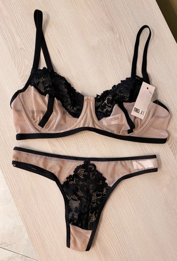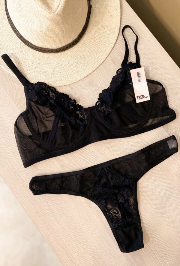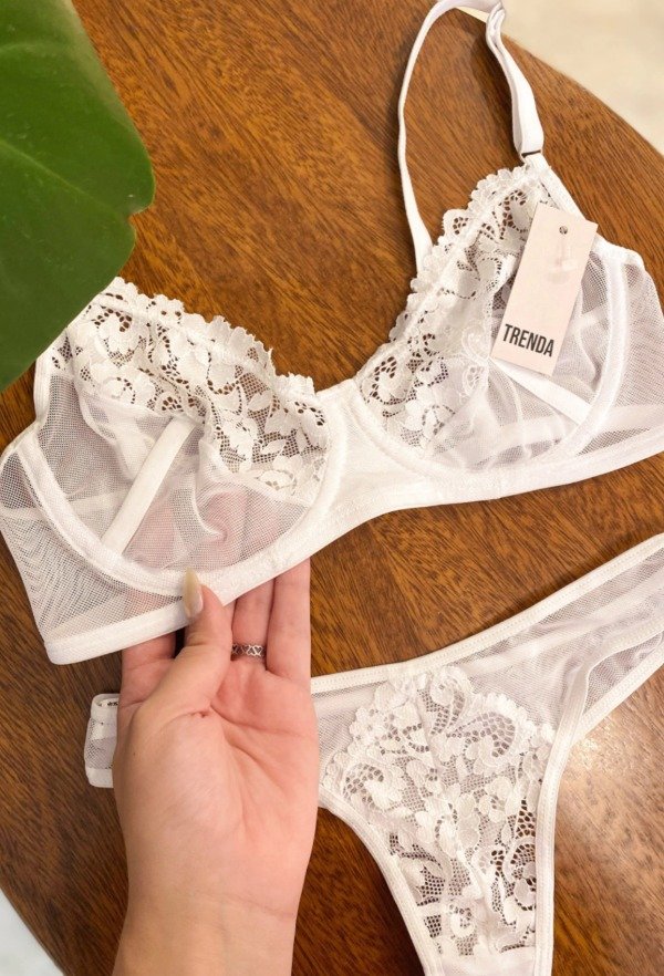 Conjunto soutien con aro y colaless en tul y puntilla.