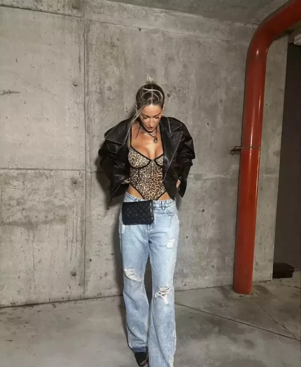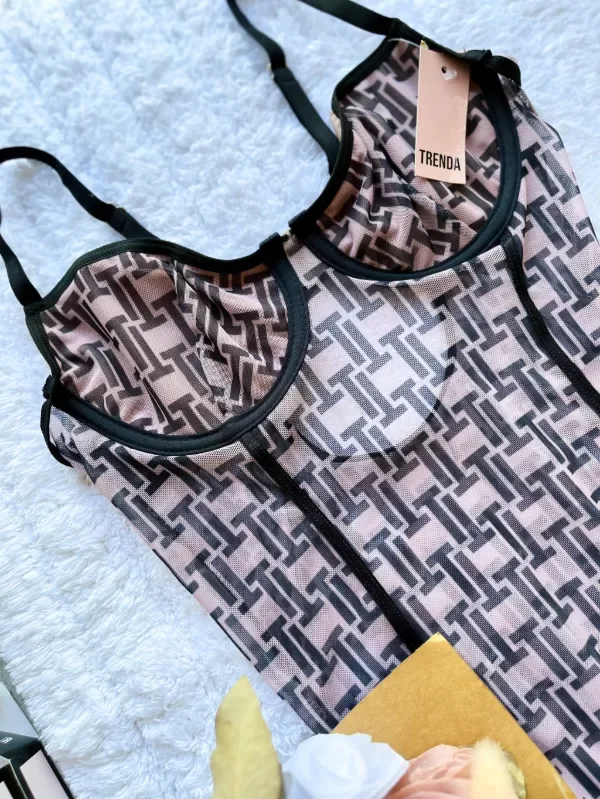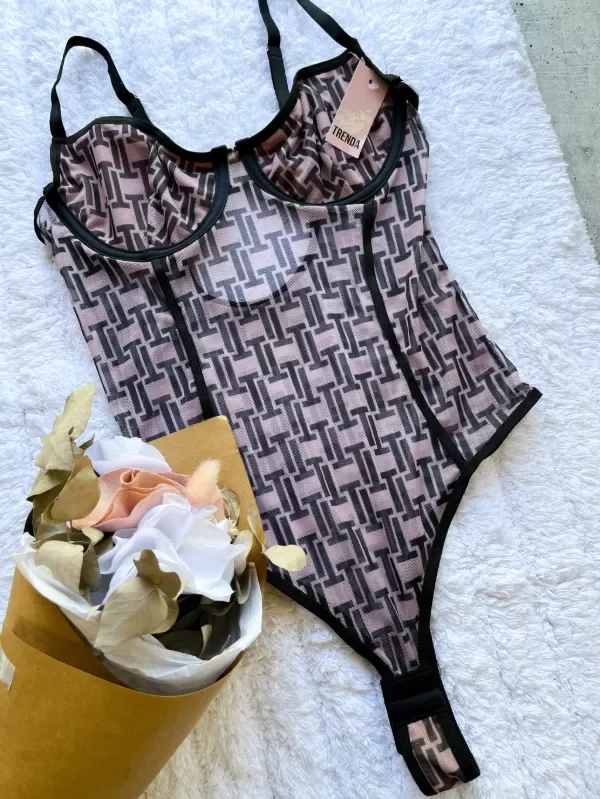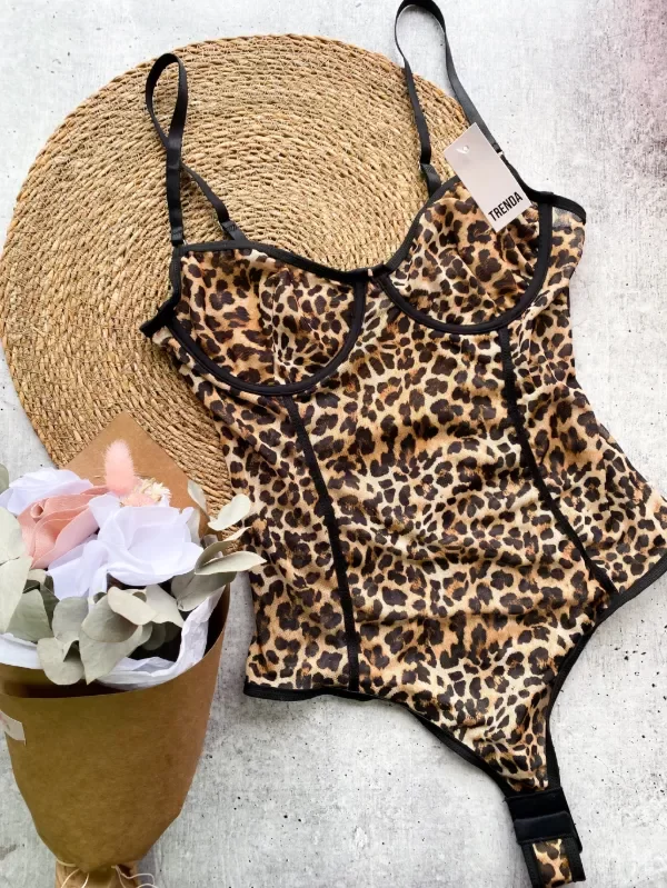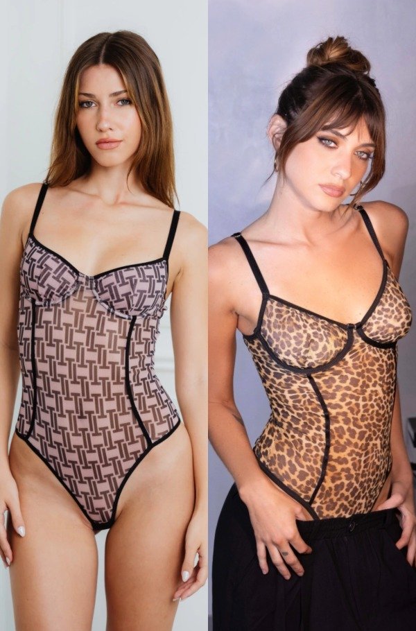 Body con aro y tasa forrada en tul animal print con gancho abajo