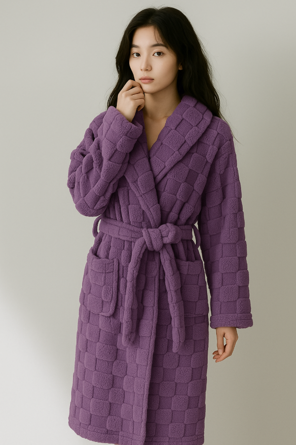 Envuélvete en comodidad con nuestra bata de felpa con textura acolchada, ideal para esos momentos de descanso en casa. Confeccionada en un suave tejido tipo sherpa de alta calidad, ofrece una sensación cálida y envolvente desde el primer uso.