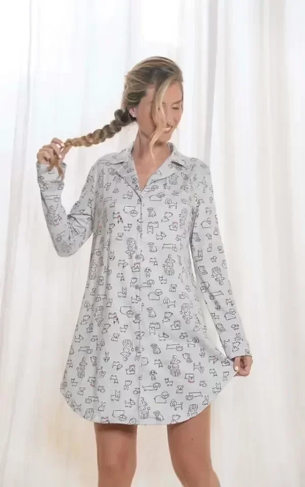 Camisón de Noche para Mujer con Estampado Divertido - Manga Larga y Botones