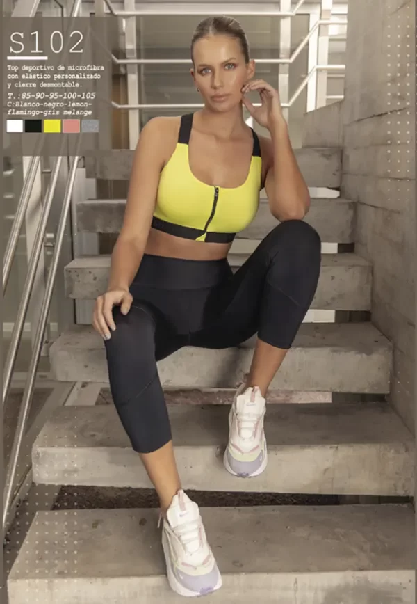 Top deportivo de lycra reforzada con elastico personalizado y cierre desmontable